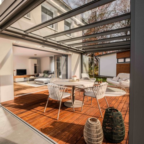 Seit dem Jahr 2000 gestalten wir bei der Wild und Kienle Bauelemente GmbH individuelle Lieblingsplätze, die drinnen und draußen auf stilvolle Weise miteinander verbinden. Unser gesamter Fokus liegt zu 100 % auf hochwertigen Terrassenüberdachungen, maßgefertigten Wintergärten, modernen Lamellendächern und flexiblen Faltwänden – und das vor allem für unsere Kundinnen und Kunden in Ulm und Umgebung.